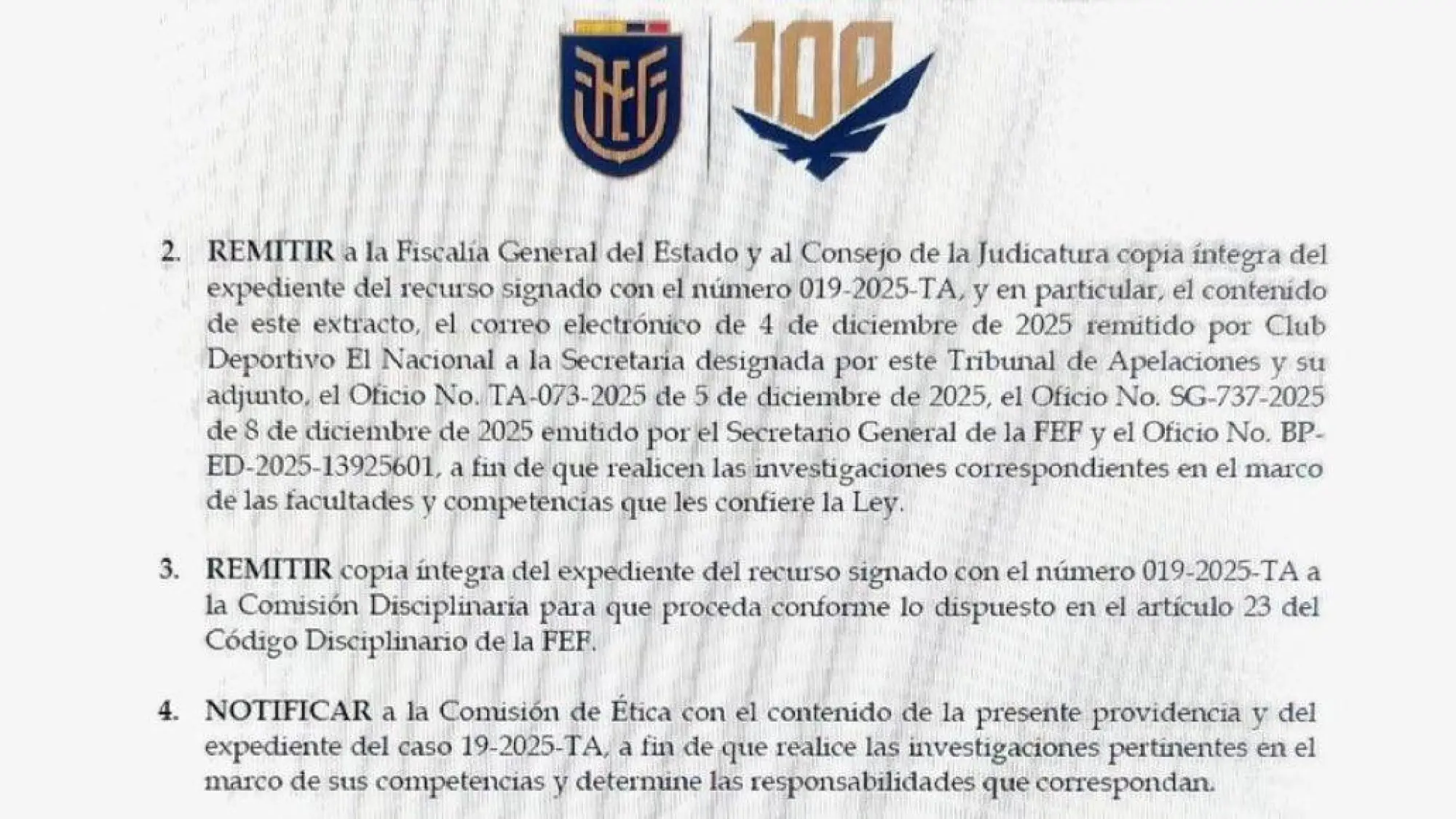 La Federación Ecuatoriana de Fútbol remitió a la Fiscalía General del Estado unos documentos tras detectarse una presunta adulteración de registros bancarios dentro de la apelación presentada por El Nacional.